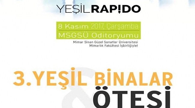 Sonuç odaklı bir yaklaşım ile önerilerin paylaşılacağı “Yeşil Rapido 3. Yeşil Binalar ve Ötesi Konferansı” Mimar Sinan Güzel Sanatlar Üniversitesi (MSGSÜ) Mimarlık Fakültesi işbirliği ile MSGSÜ Sedad Hakkı Eldem Oditoryumu'nunda düzenlenecek.