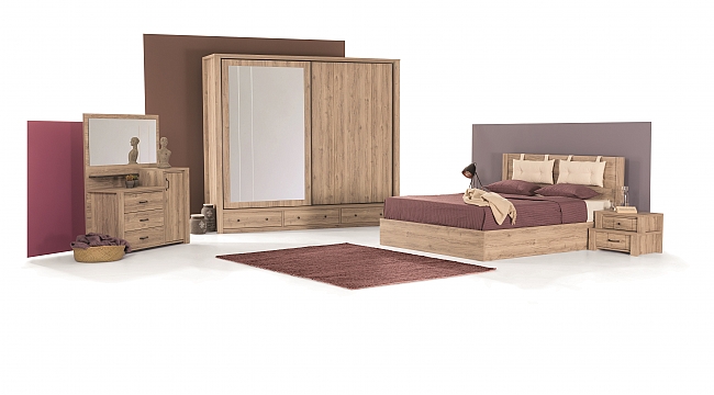 Limyra yatak odası, ahşap dokuların klasik çizgilerle birleştiği zamansız bir yaşam alanı sunuyor. Doğal tavrıyla sadeliğin zarafetini yatak odalarınıza taşıyan Limyra, fonksiyonel özellikleriyle de farkını ortaya koyuyor. Sahip olduğu komodin, travers ve şifonyer ile geniş depolama alanı sunarken, sürgü kapaklı dolabı ile de tüm ihtiyaçlarınızı en kolay şekilde karşılayabilmenizi sağlıyor.