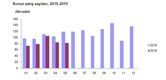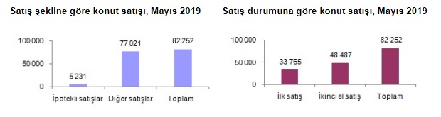 Türkiye İstatistik Kurumu mayıs ayı konut satış istatistiklerini açıkladı. Konut satışlarında, İstanbul 15 bin 895 konut satışı ve yüzde 19,3 ile en yüksek paya sahip oldu. Satış sayılarına göre İstanbul'u, 8 bin 240 konut satışı ve yüzde 10 pay ile Ankara, 5 bin 091 konut satışı ve yüzde 6,2 pay ile Antalya izledi. Konut satış sayısının düşük olduğu iller sırasıyla 4 konut ile Ardahan, 10 konut ile Hakkari ve 26 konut ile Bayburt oldu. Türkiye genelinde ipotekli konut satışları bir önceki yılın aynı ayına göre yüzde 85,8 oranında azalış göstererek 5 bin 231 oldu. Toplam konut satışları içinde ipotekli satışların payı yüzde 6,4 olarak gerçekleşti. İpotekli satışlarda İstanbul bin 163 konut satışı ve yüzde 22,2 pay ile ilk sırayı aldı. Toplam konut satışları içerisinde ipotekli satış payının en yüksek olduğu il yüzde 19 ile Eskişehir oldu.